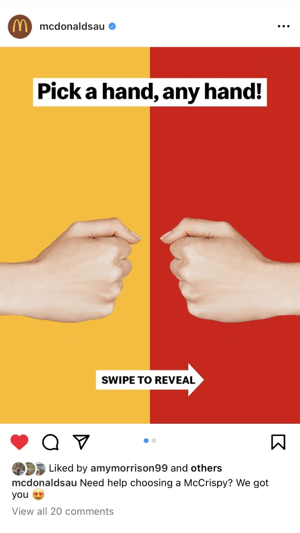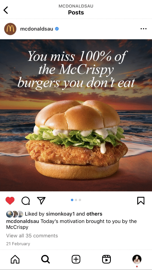 We leveraged The Kid LAROI’s social channels, and Macca’s own, to launch the McCrispy alongside the film (60” above). The goal? To make the McCrispy our next big thing, following in the footsteps of iconic Macca’s burgers, like the Big Mac and Quarter Pounder.